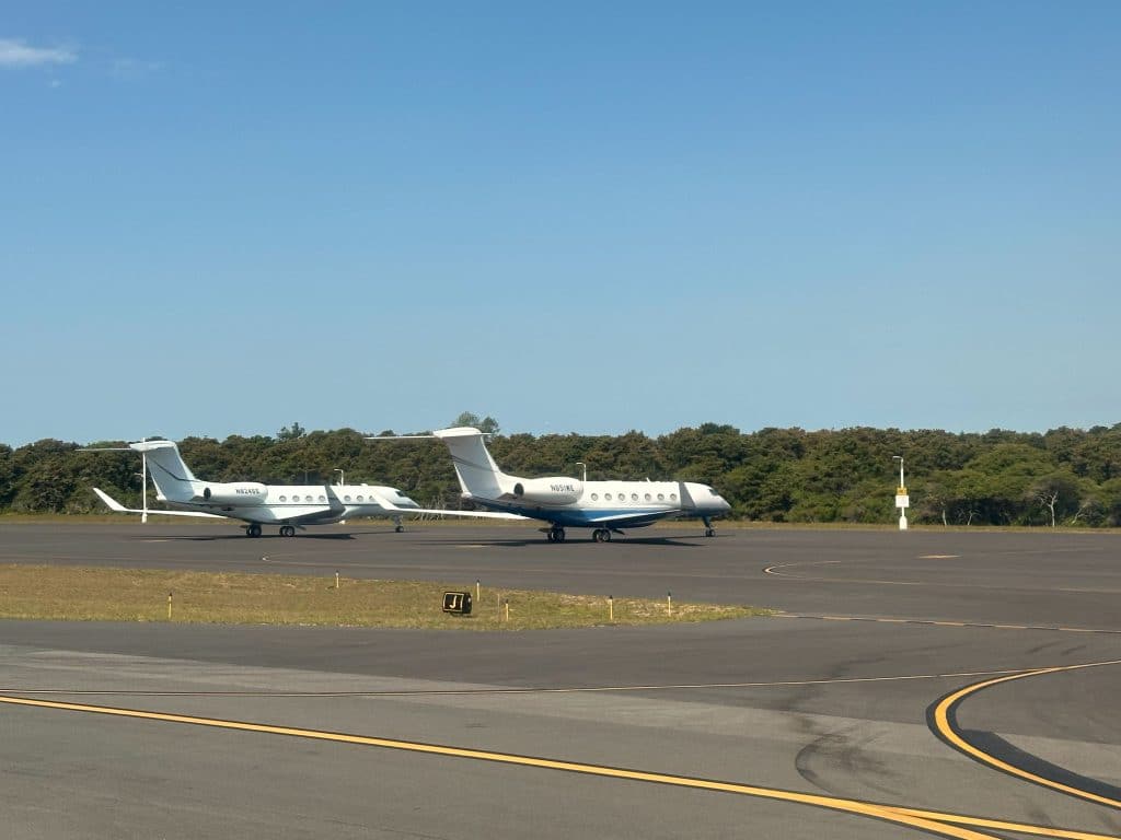 Note: In some of the shots, a quick glance at the aircraft tail numbers reveals the island’s deep pocketed clientele. The Gulfstream N824SS belongs to Liberty Mutual Insurance Co. (Bedford, MA), while N651WE is registered to the Bank of Utah Trustee (Salt Lake City, UT). Among the other private jets are a Cessna Citation X+ (N79ZE) owned by Chairman Aviation, and fractional ownership companies including Netjets’ Bombardier Challenger 300 (N730QS) and various PlaneSense aircraft.