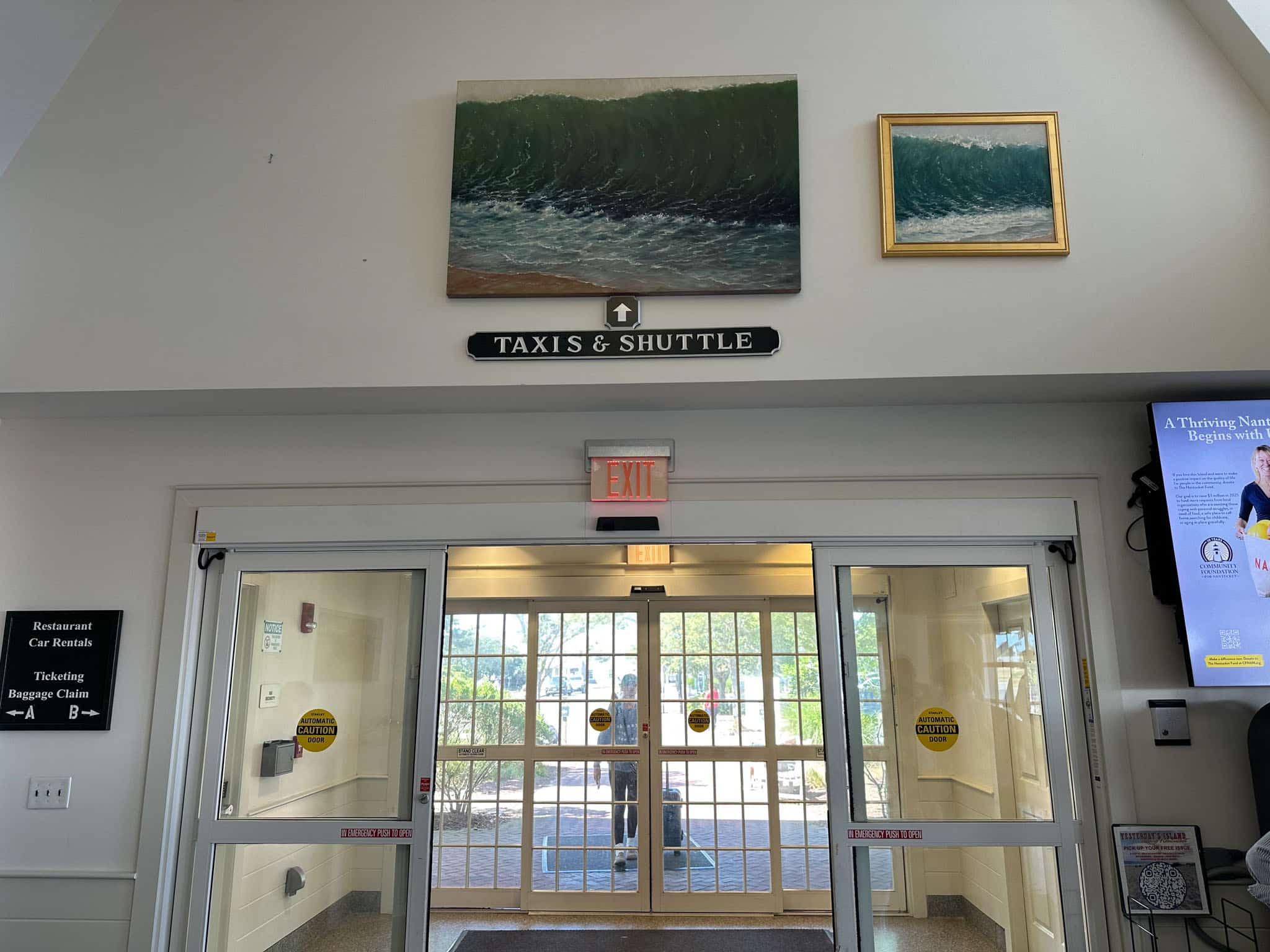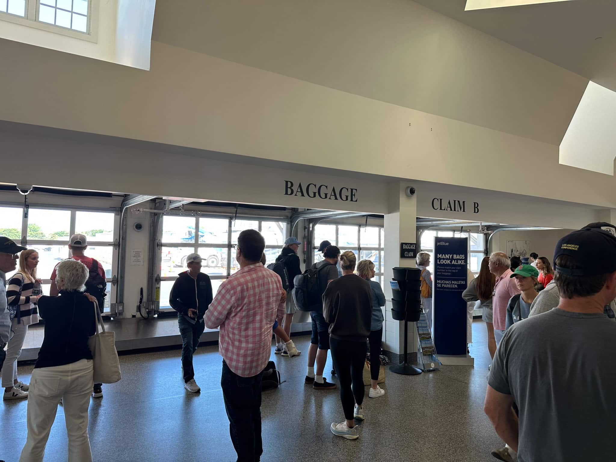 Fast forward to our gate arrival at the gray shingle-colored airport, I walked past the baggage claim, which is essentially a garage that opens up where bags are unloaded.